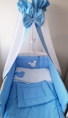 1 db takaró, 1db párna (30x40 cm), 1 db rácsvédő és 1 db baldachin (baldachin tartó vasat nem tartalmazza, külön kell rendelni!)