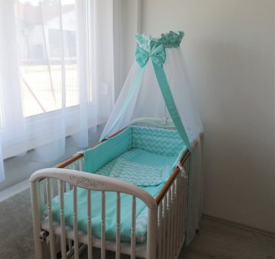 A babaágynemű szett tartalma takaró- és párna huzat, rácsvédő, baldachin