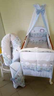 A takarót két féle méretben készítjük (70x90 és 85x135 cm), ezt ki tudod és ki is kell választani a kosár gomb felett. Újszülötteknél a bébi méretet javasoljuk. A rácsvédőt másnéven fejvédőt kérheted úgy, hogy körbeérje a kiságyat, itt kérlek add meg, a kiságy méretét.