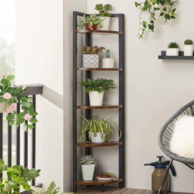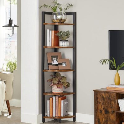 5 szintes sarok könyvespolc sarok könyvespolc Sokoldalú tárolóegység növénytartó nappalihoz Hálószobához Irodai Ipari stílusú rusztikus barna és fekete:
