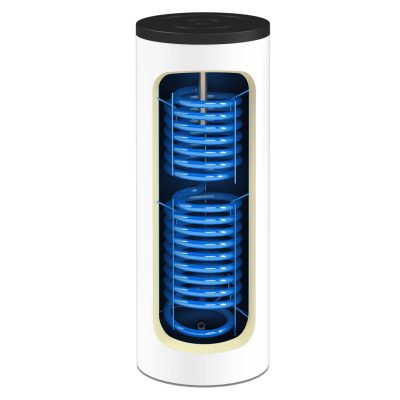 • 500 literes álló 2 hőcserélős Kospel indirekt tároló 2,25 m² és 1,04 m² felületű hőcserélővel bojler zománcozott HMV tartály