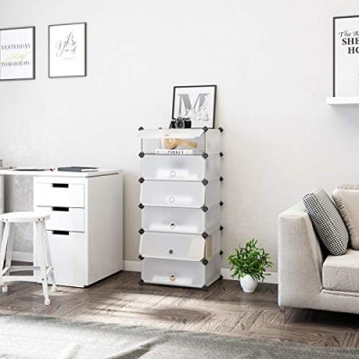 Songmics 6 szintes cipőtartó reteszelhető doboz állvány álló tároló rendszer ajtókkal fehér