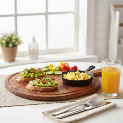 • Természetes megjelenés: a meleg tónusú akáciafa kiemeli az ételek színeit.