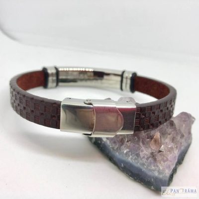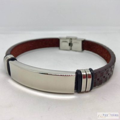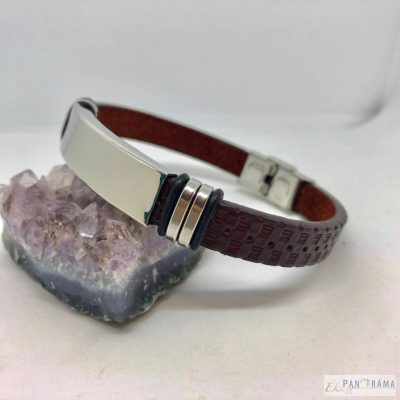 Bőr szíjas, acélbetétes divatos férfi karkötő.