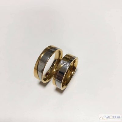 Elegáns arany színű acél gyűrű, ezüst díszítéssel.