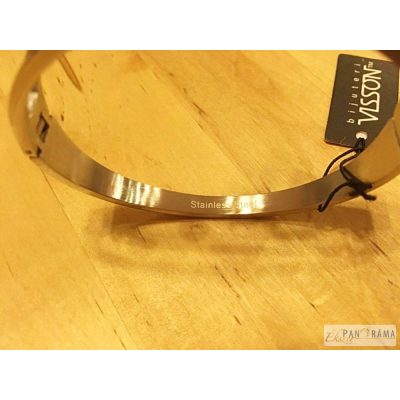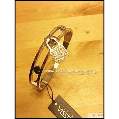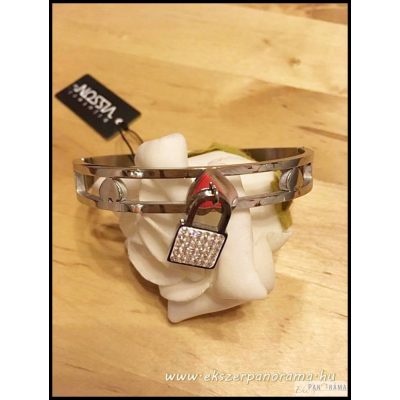 Acél karperec nyitható, különleges kialakítású, kristályokkal díszített kis lakat lóg a közepén, ami egy kis szívből indul ki. Átmérője 60 mm és 6mm széles.