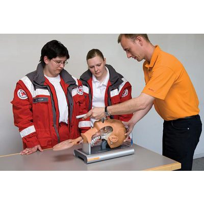A felnőtt intubációs tréner ideális a légútkezelés gyakorlásához. Valósághű és élethű anatómiával rendelkezik, amely az arc bal oldalán lévő oldalsó nyíláson keresztül tárul fel. Így az intubációs folyamat közelről megfigyelhető és szükség esetén korrigálható. A garat és a légcső átlátszó falai szintén ideális ellenőrzési lehetőségeket biztosítanak.