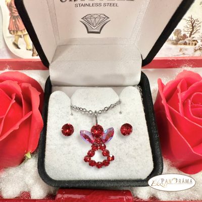 -Swanis® eredeti kristállyal készített anagyalkás ékszer szett, amihez eredeti kristályos 6 mm fülbevaló, és 50 cm nemesacél nyaklánc tartozik.