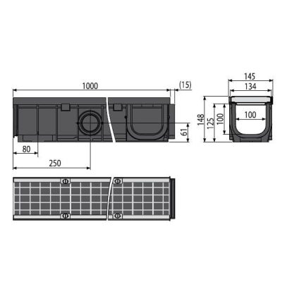 • A vízelvezető folyóka belső keresztmetszete: 100×100 mm, PP – polipropilén zsírkővel – ellenáll a mechanikai, kémiai és hő károsodásnak