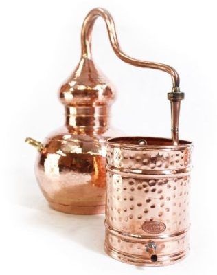 • Teljes lepárló (üst, sisak, páracső csavaros zárással, hűtő) vörösrézből
