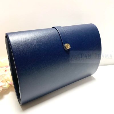 Ajándékcsomag sötétkék rostbőr alkalmi táska egy gyönyörű Gold filled nyaklánccal, amiben csodásan csillogó kristályok van.