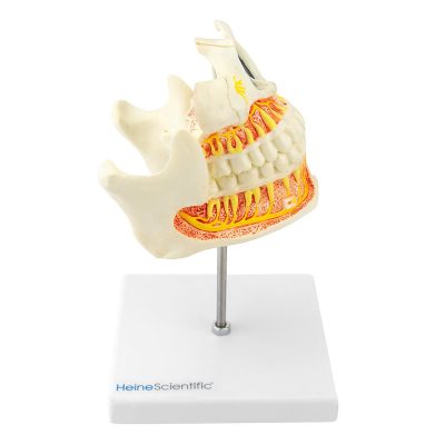 Mozgatható emberi fogazatmodell, amely a felső és alsó állkapcsot mutatja be a csontvázszerkezetek, idegek és erek részletes ábrázolásával. Mivel a felső és alsó állkapocs rugalmas fémrugóval van összekötve, a modell kinyitható a rágómozgások és harapási rendellenességek bemutatására. Az állkapocsmodell 32 foggal mutatja be a maradandó fogazatot.