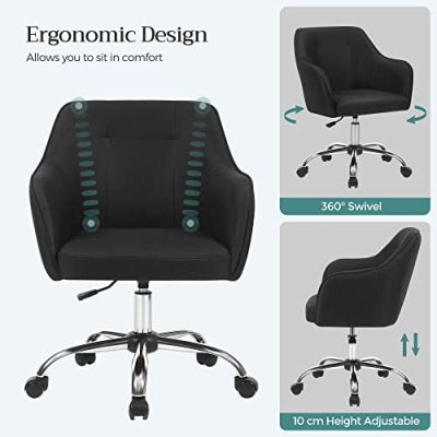Irodai szék, kényelmes asztali szék, állítható magasságú számítógépes szék, 120 kg, acél váz, művászon, légáteresztő, otthoni iroda, irodai, fekete: