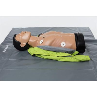 Defibrillációs eljárások gyakorlására szolgál. Az oktató baba fejjel rendelkezik, karok nélkül.