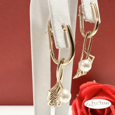 18K Gold Filled, lógós fülbevaló gyönggyel díszítve.
