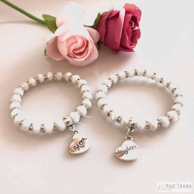A csomagban 2 db karkötő található! Az egyik szívecskén Mom felirat, a másikon Daughter felirat található, ezért ideális ajándék lehet lányunk vagy édesanyánk részére.