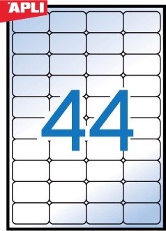 APLI 48,5 x 25,4 mm méretű, átlátszó, matt felületű, időjárásálló öntapadós etikett címke, A4-es lapon, permanens ragasztóval, kerekített sarkokkal. Rendelési azonosító: APLI 01223.