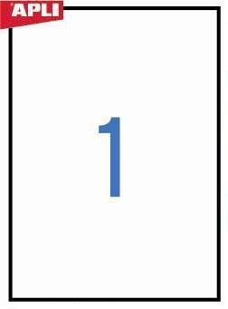 APLI No. 01228 fehér színű 210 x 297 mm méretű, lézernyomtatóval nyomtatható, öntapadós időjárásálló etikett címke, erős, tartós ragasztóval A4-es íven - kiszerelés: 20 címke / 20 ív (LCA1228)