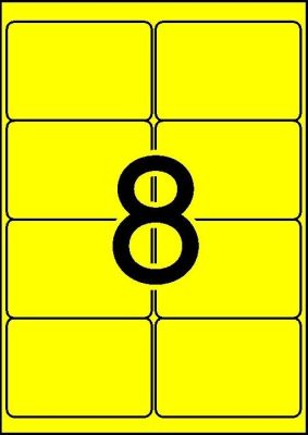 • APLI No. 02874 neon sárga színű 99,1 x 67,7 mm méretű, lézernyomtatóval nyomtatható, öntapadós etikett címke, permanens ragasztóval A4-es íven - kiszerelés: 160 címke / 20 ív (LCA2874)