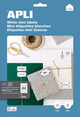 • APLI No. 12925 fehér színű 48,5 x 25,4 mm méretű, univerzálisan nyomtatható, öntapadós etikett címke, permanens ragasztóval A4-es íven - kiszerelés: 440 címke / 10 ív (LCA12925)