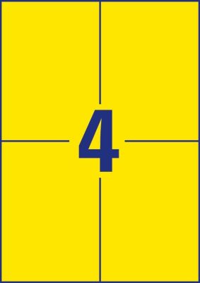 • APLI No. 12991 sárga színű 105 x 148 mm méretű, univerzálisan nyomtatható, öntapadós etikett címke, permanens ragasztóval A4-es íven - kiszerelés: 80 címke / 20 ív (LCA12991)