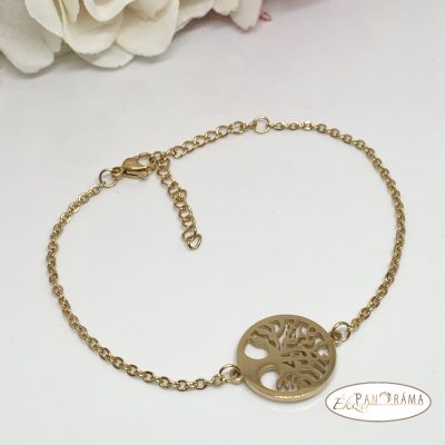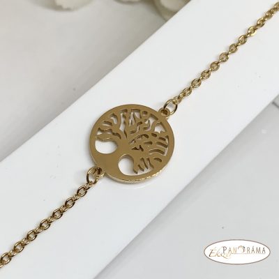 Nemesacél aranyozott életfa karkötő.