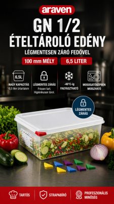 Araven GN edény 1/2 100 mm 6,5 liter ételtároló légmentesen záró fedővel