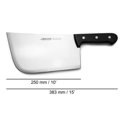 Az Arcos Universal bárd penge része kiváló minőségű rozsdamentes acélból készült, amely rendkívül éles és tartós. Ez a penge kiválóan alkalmas a húsok, zöldségek és más élelmiszerek vágására és szeletelésére. A 25 cm hosszúságú penge ideális méretet biztosít a kényelmes használathoz, és lehetővé teszi a pontos és hatékony munkavégzést. A bárd súlya 1000 gramm, amely megfelelő erőt és stabilitást biztosít a nagyobb darabok feldolgozásához.