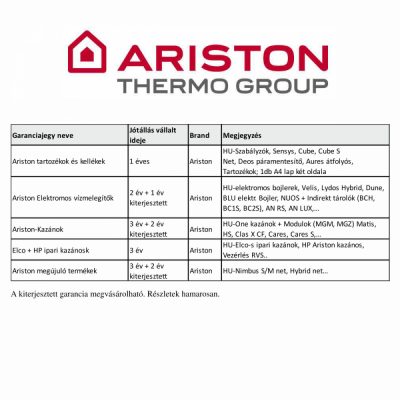 Az Ariston termékcsalád esetében éves karbantartás szükséges a bojlereken, amelyet szakember végez. Ez azért is fontos, hogy a kiterjesztett garancia életben maradjon a készülékre. A vízkőlerakódás jelentősen ronthat a teljesítményen és a hatékonyságon, így semmiképp sem ajánlott kihagyni. Arról, hogy miért kiemelkedően fontos a bojler tisztán tartása, a bojler vízkőtelenítéscikkünkbenolvashat.