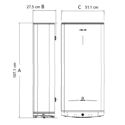 A bojler elhelyezésében nagy szerepet játszik a kompakt méret, a mind össze 27 cm mélység és a flexibilis elhelyezés. Felszerelhető függőlegesen, de ha arra van szükség gond nélkül fektetve vízszintesen is telepíthető. Vízszintes beszerelés esetén a készüléket el kell fordítani az óramutató járásával megegyező irányba úgy, hogy a vízvezeték csövek a bal oldalra kerüljenek (a hideg vízcsőnek kell alsó helyzetben lennie).