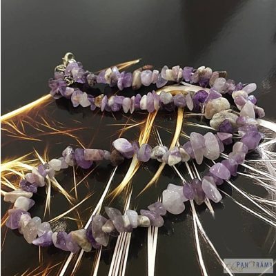 Ametiszt kristályokból fűzött nyaklánc! Delfin kapoccsal záródik! Hozzá illő fülbevaló és karkötő is kapható , keresse az ásvány ékszerek között.