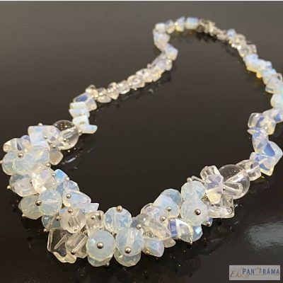 Fehér és áttetsző ásványokkal díszített divatos nyakék! Hozzá illő fülbevaló és karkötő is kapható hozzá, keresse a kristály ékszerek között.