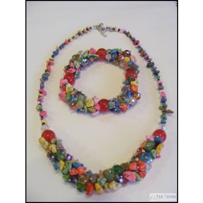 Színes ásványból fűzött divatos nyakék! Hozzá illő karkötő is kapható hozzá 2200 Ft-ért.