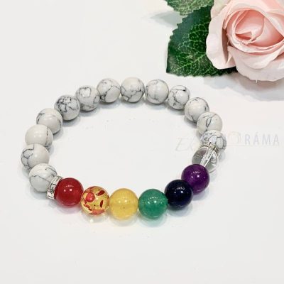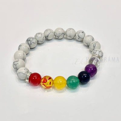 Ásványkő-gyöngy gumis karkötő színes és howlit ásvány gyöngyökkel.