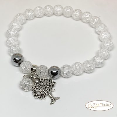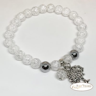 • Ásványkő Karkötő életfa és gyöngy lógóval - roppantott hegyi kristály 8 mm