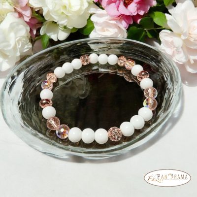 Ásványkő sztreccs karkötő fehér Jade ásványokkal,arany kristályos gyöngyökkel díszített!