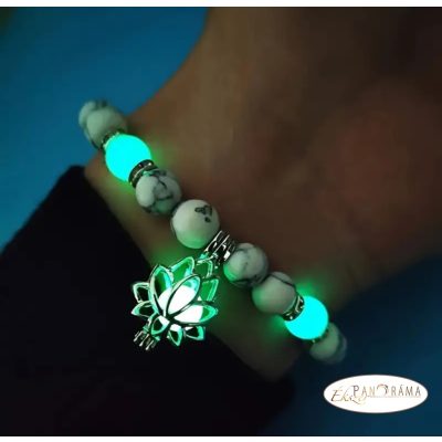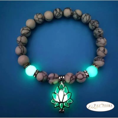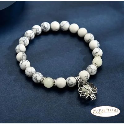 Ásványkő sztreccs karkötő howlit kövekkel, lógó lótuszvirág medállal