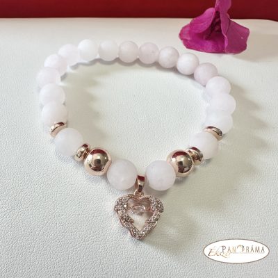 Ásványkő sztreccs karkötő matt rózsakvarc ásványokkal, kristályos szív medál díszítéssel!