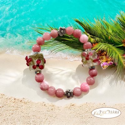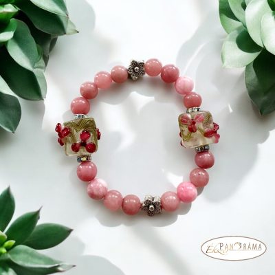 Ásványkő karkötő - rodokrozit üveggyönggyel