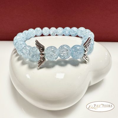 Ásványkő sztreccs karkötő színezett roppantott hegyi kristály gyöngyökkel, ezüst színű angyalszárny betéttel.