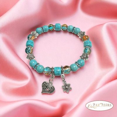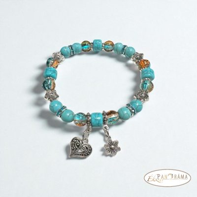 Ásványkő sztreccs karkötő Türkiz ásványokkal, ezüst gyöngyökkel, 2 medállal díszített! díszített!