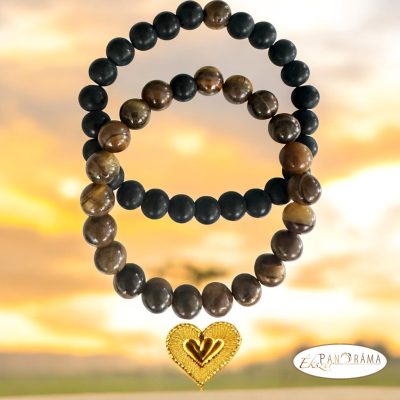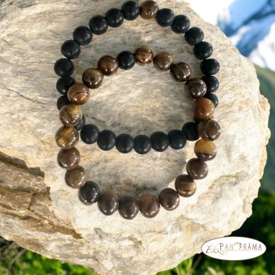 Ásványkő páros karkötő - tigrisszem és fekete ásvány gyöngyökből