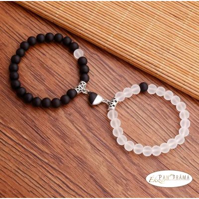 Ásványkő sztreccs karkötő Hegyikristály és fekete Ónix kövekkel, mágneses szív kapcsolattal!