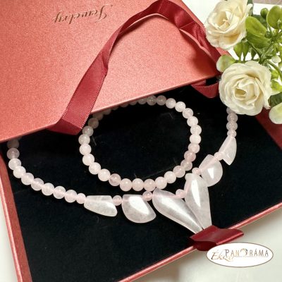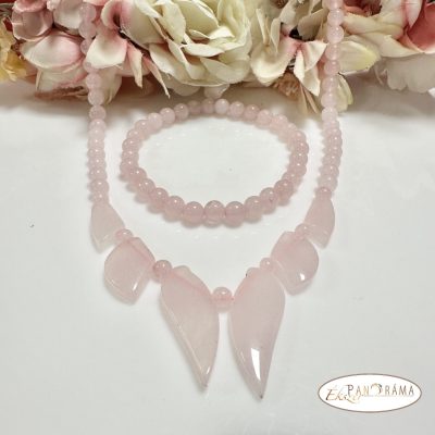 Ásványkő szett, rózsakvarc nyakék karkötővel