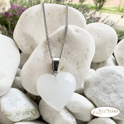 NYAKLÁNC Szív ásványkővelOpali(tejkvarc) ásványkő nyaklánc, szív ásvány medállal, acél nyakláncon.