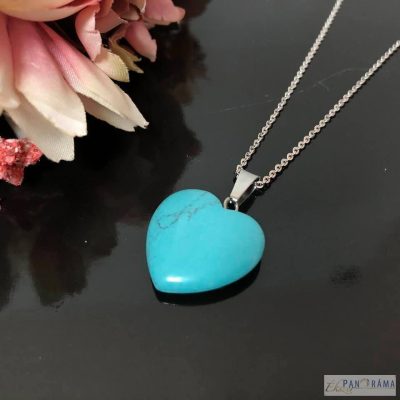 ÁSVÁNYKŐ szív medálos NYAKLÁNC - türkiz
