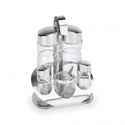 • Komplett ízesítő szett: 5 részes szett, amely tartalmaz egy só- és borsszórót, egy szalvétatartót, egy fogvájótartót, valamint egy tartót szószoknak, önteteknek vagy más ízesítőknek.