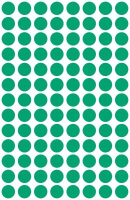 • Avery Zweckform No. 3012 zöld színű, 8 mm átmérőjű, öntapadó jelölő címke (jelölő pötty, jelölő pont) permanens ragasztóval - kiszerelés: 416 címke / csomag, 4 ív / csomag