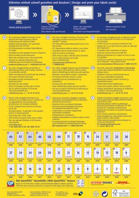 Borotvaéles nyomtatási képA minőségi alapanyagoknak köszönhetően a nyomatot borotvaéles képek (vékony, határozott, tisztán látható kontúrok), kiváló toner tapadás, valamint elkenődésmentes felület jellemzi. Az Avery Zweckform címkéken kiváló nyomtatási eredményt érhetünk el, melyek 100%-ban kompatibilisek az általánosan használt nyomtatókkal (HP, Epson, Canon, Brother, Samsung, Kyocera, Lexmark, OKI).