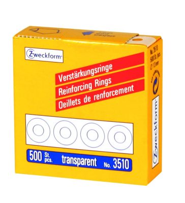 Avery Zweckform 13 mm átmérőjű, átlátszó lyukerősítő gyűrű, környezetbarát polipropilén alapanyagból, praktikus adagoló dobozban. A doboz összesen 500 darab, külön-külön leválasztható, átlátszó, lyukmegerősítő matricát (címkét, gyűrűt) tartalmaz.